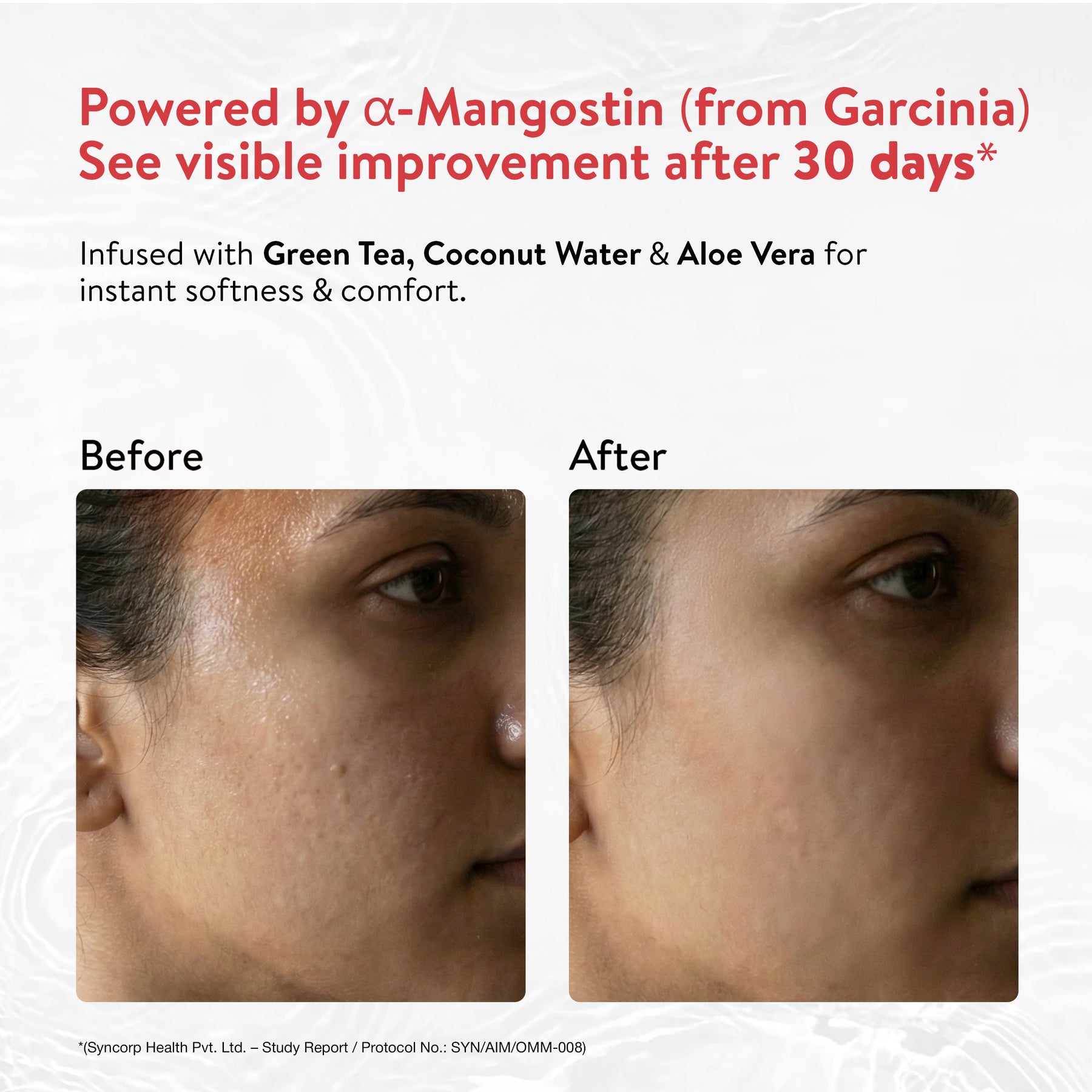 α- mangostin is the major active component of Garcinia, promoting strong antibacterial action. The extract effectively prohibits the proliferation and activation of acnegenic bacteria, possessing therapeutic potential in mitigating future breakouts.