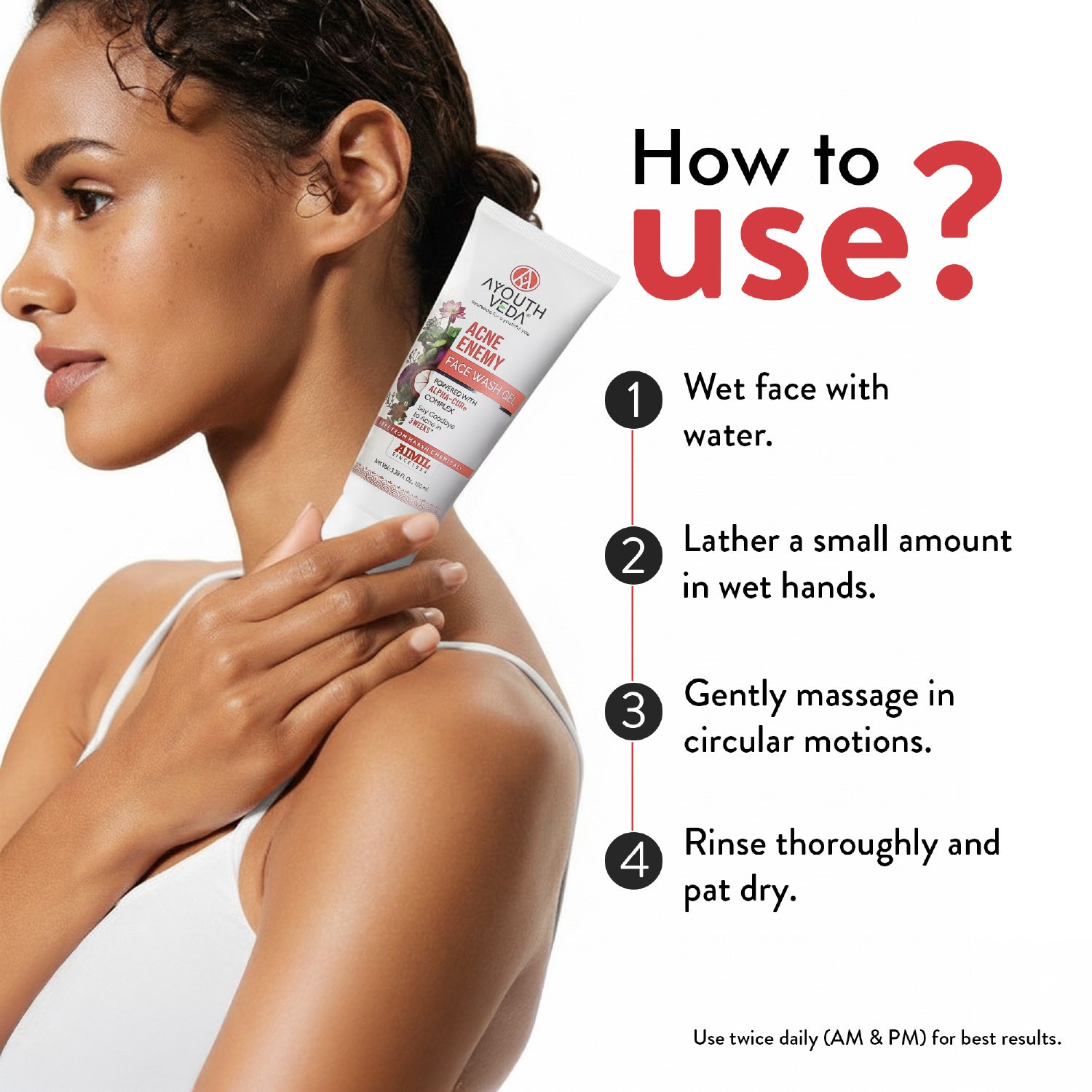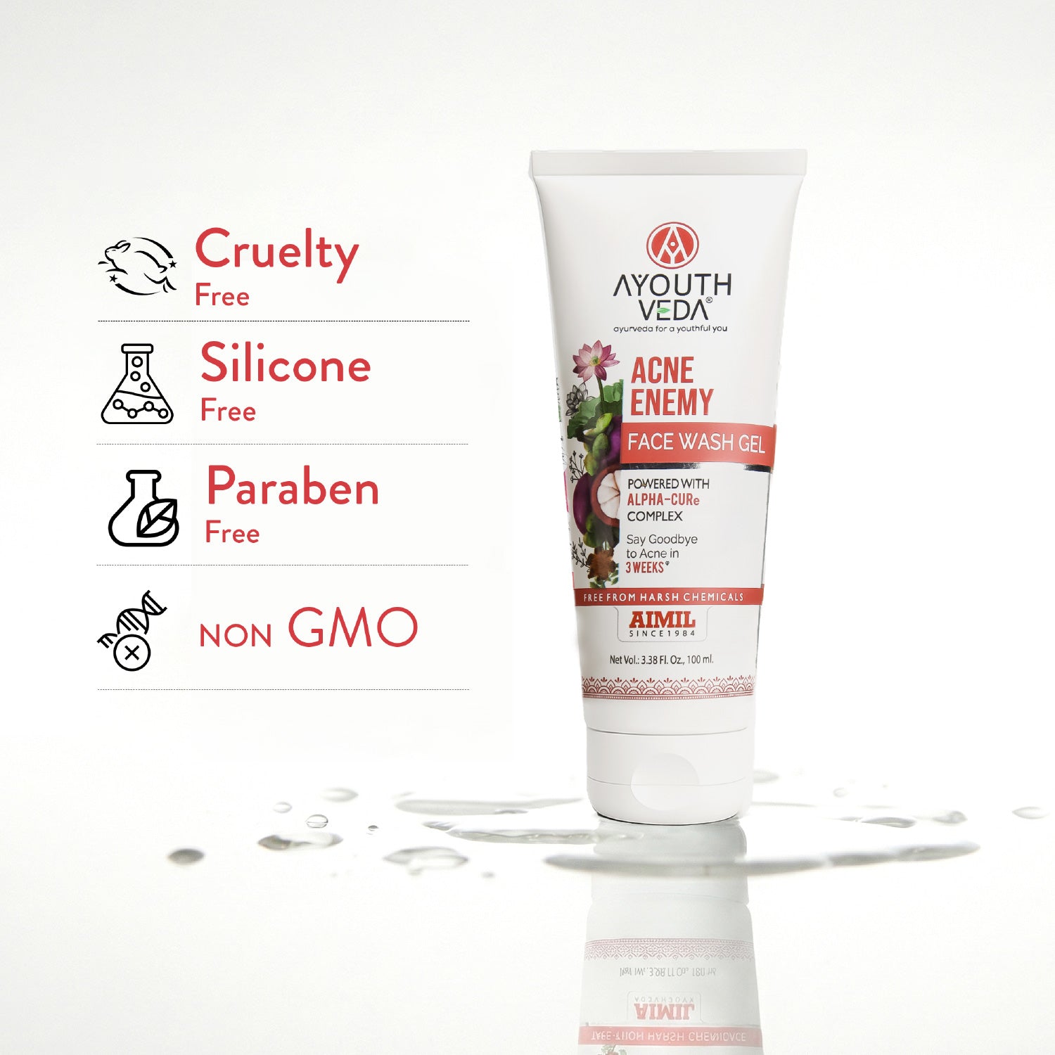 Ayouthveda Acne Enemy Face Wash Gel for Acne & Pimples | Fights Acne-Causing Bacteria & Excess Oil | With Alpha-CURe Complex, Garcinia & Manjistha | Sulfate-Free Gel Cleanser | For Acne-Prone Skin | Net Qty- 100 ml