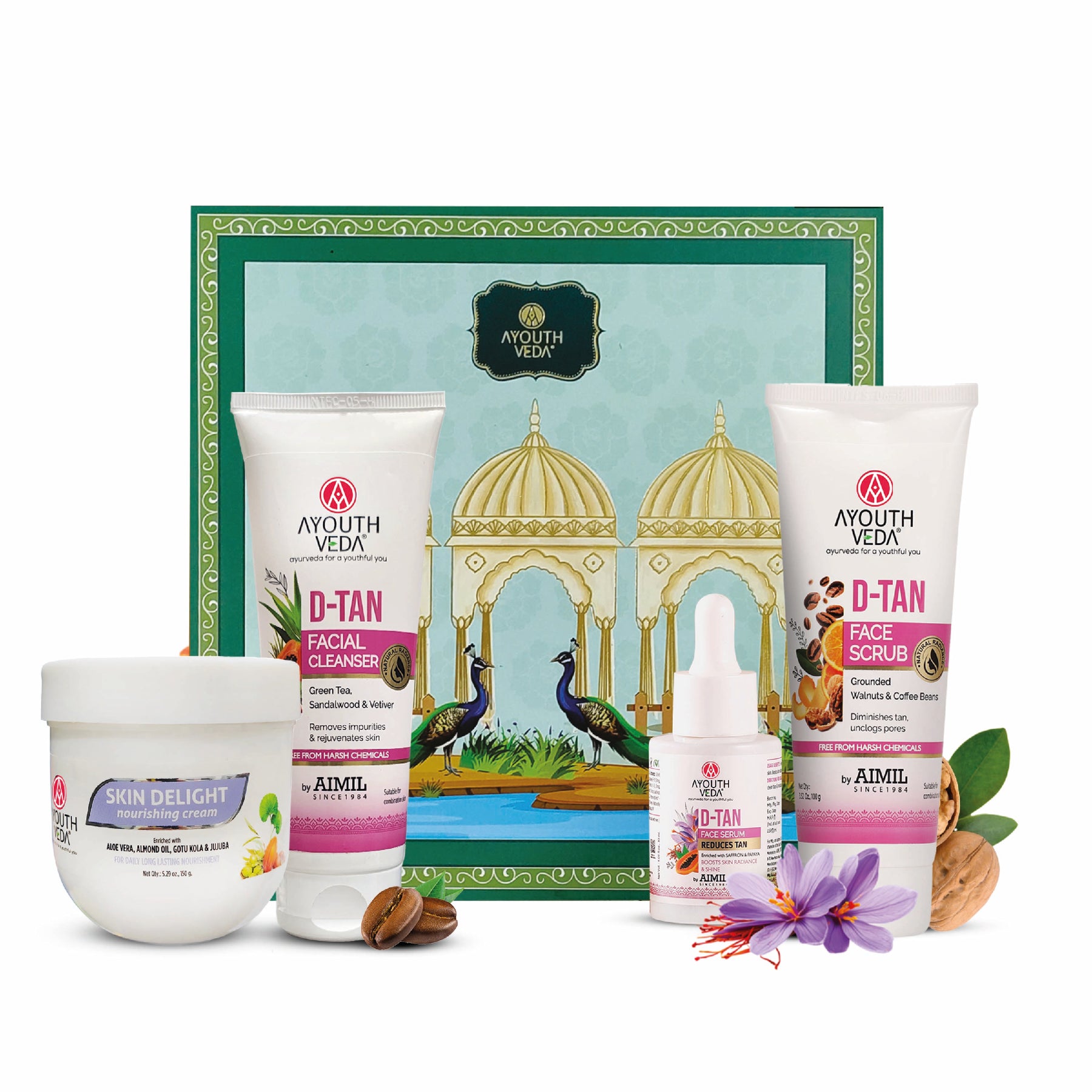· D-Tan Facial Cleanser (100 g): A refreshing blend of Papaya, Aloe Vera & Green Tea that gently cleanses, reduces pigmentation, and brightens the skin.